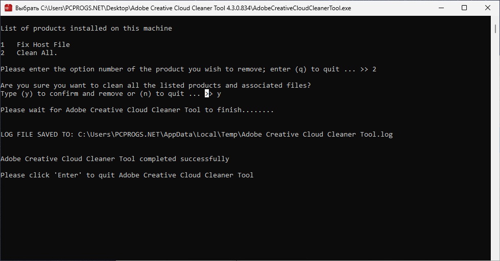 - Дожидаемся удаления и можем устанавливать продукты Adobe по новой.