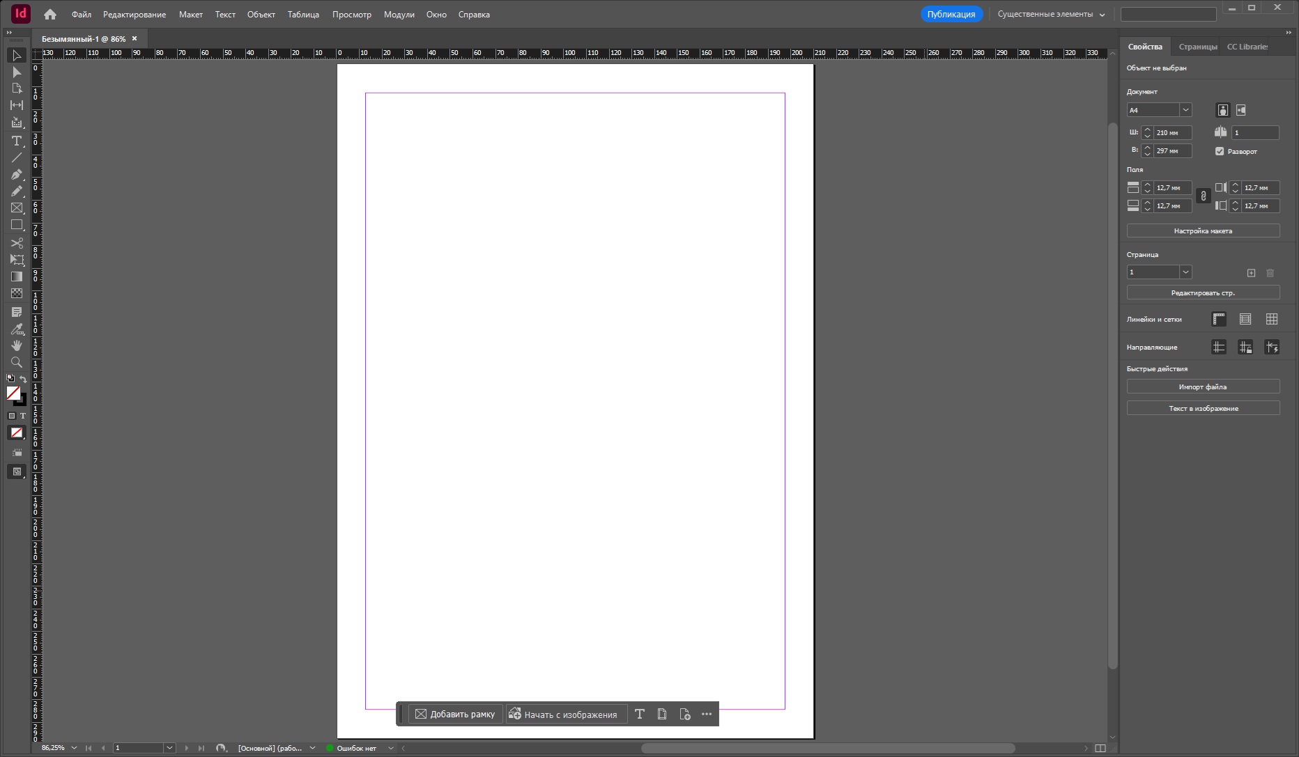 Обзор программы для компьютерной верстки стоит начать с ее интерфейса - он может быть как на русском, так и на английском языке. Нужная локализация устанавливается на стадии установки программы. В остальном, если вы уже работали с продуктами линейки Creative Cloud, вас ожидает привычное рабочее окно с возможностью полной настройки и горячими клавишами.