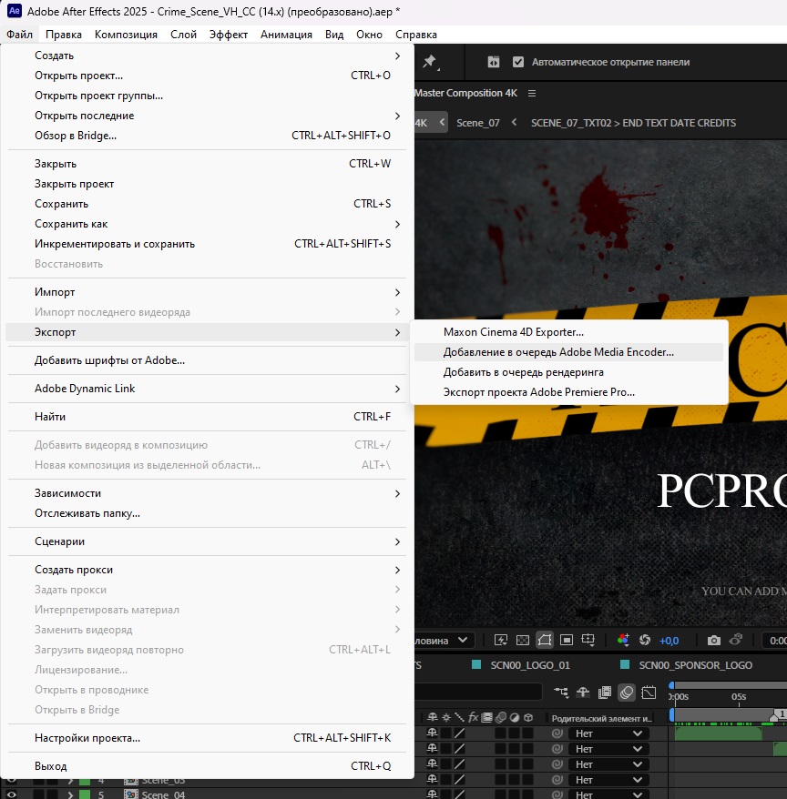 Конечный проект потребуется экспортировать в просматриваемый файл. Сделать это можно как встроенными средствами кодирования, так и при помощи Media Encoder 2025. Встроенные средства кодирования поддерживают экспорт во многие форматы, а также имеют готовые предустановки, которые помогут адаптировать видео под нужные устройства или экраны.