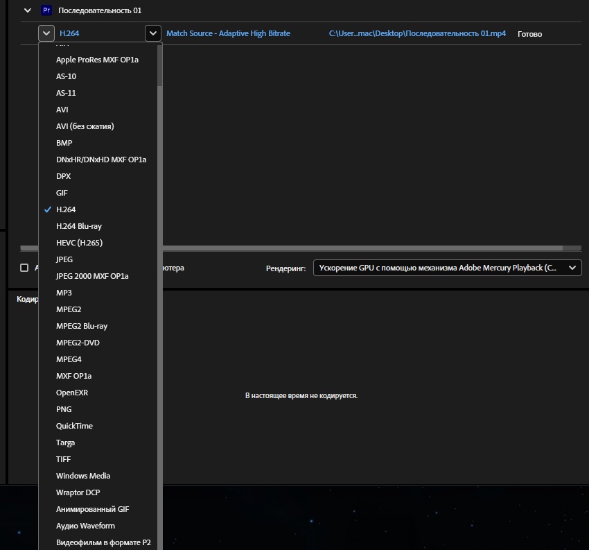 Принцип работы кодировщика прост - Media Encoder создает так называемую "очередь", которая обрабатывается в автоматическом режиме. По сути, пользователь просто импортирует проекты из Premiere Pro 2025, After Effects 2025, Audition 2025 и др.совместимых программ, устанавливает настройки кодирования и может гулять - весь медиаконтент, в дальнейшем, будет обработан и сохранен в проигрываемые файлы без человеческого вмешательства.