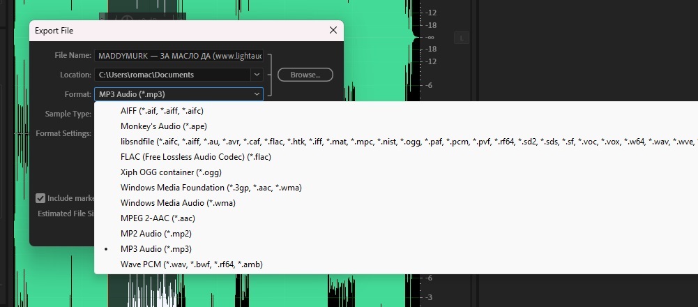 - Широкий спектр поддерживаемых форматов аудио на экспорт и импорт;